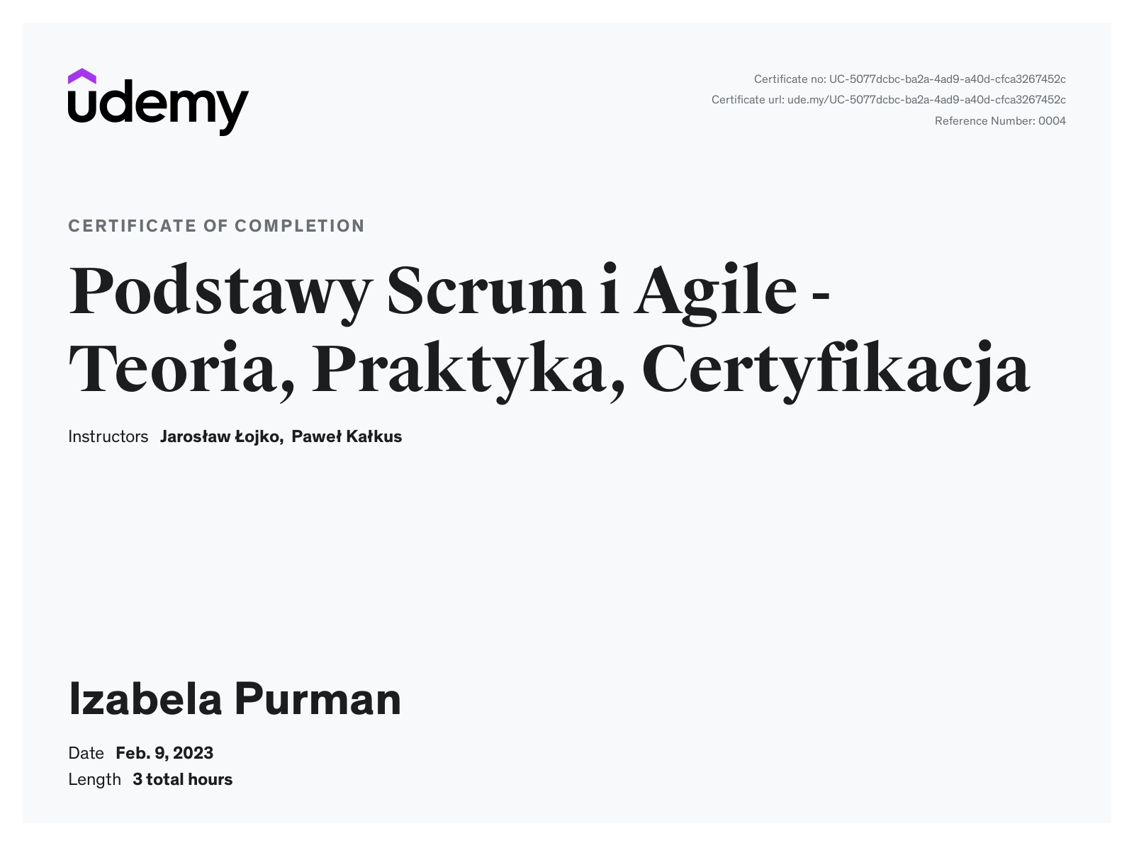 Wydrukowałam już SCRUM GUIDE ze strony scrum.org. Zrobiłam pierwszy test. 56,7% - nie jest źle. Ale jeszcze sporo pracy przede mną.